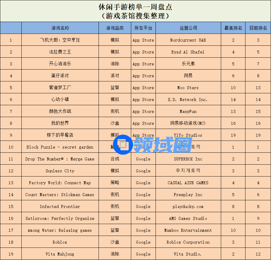美国Google Play免费榜单中,韩国发行商무지개토끼再次将旗下两款产品《Block Puzzle - secret garden》和《Sunless City》推上了TOP3,两款游戏当前分别位于榜单第1和第3名。同时,合成游戏《Drop The Number® : Merge Game》则拿下了第2名的好成绩。来自CASUAL AZUR GAMES的《Factory World: Connect Map》和Mamboo Entertainment的《Among Water: Relaxing games》也在本周冲上了TOP10,且其当前位于榜单第4和第10名。