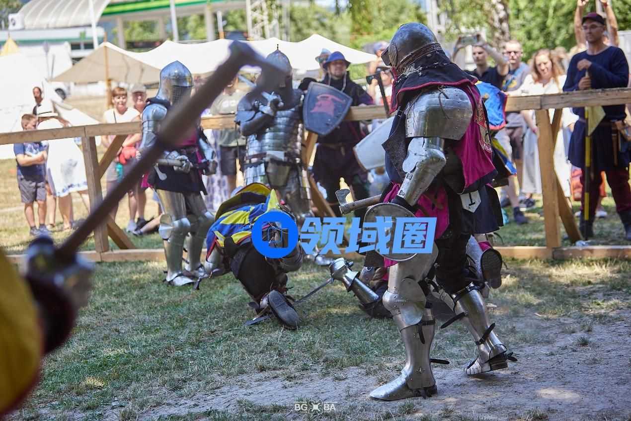红日骑士历史武术俱乐部 中世纪重甲骑士对战,游客参与战阵互动