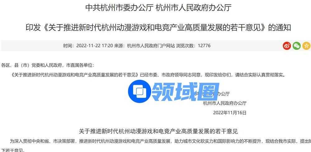2022年,国内游戏行业还在深度调整之时,杭州市政府就印发《关于推进新时代杭州动漫游戏和电竞产业高质量发展的若干意见》(以下简称《若干意见》)。提出到2025年时,推出一批形态丰富、叫好叫座的精品力作,集聚一批具有核心竞争力的头部企业或团体,全市全市动漫游戏和电竞产业年度总营收超过600亿元。