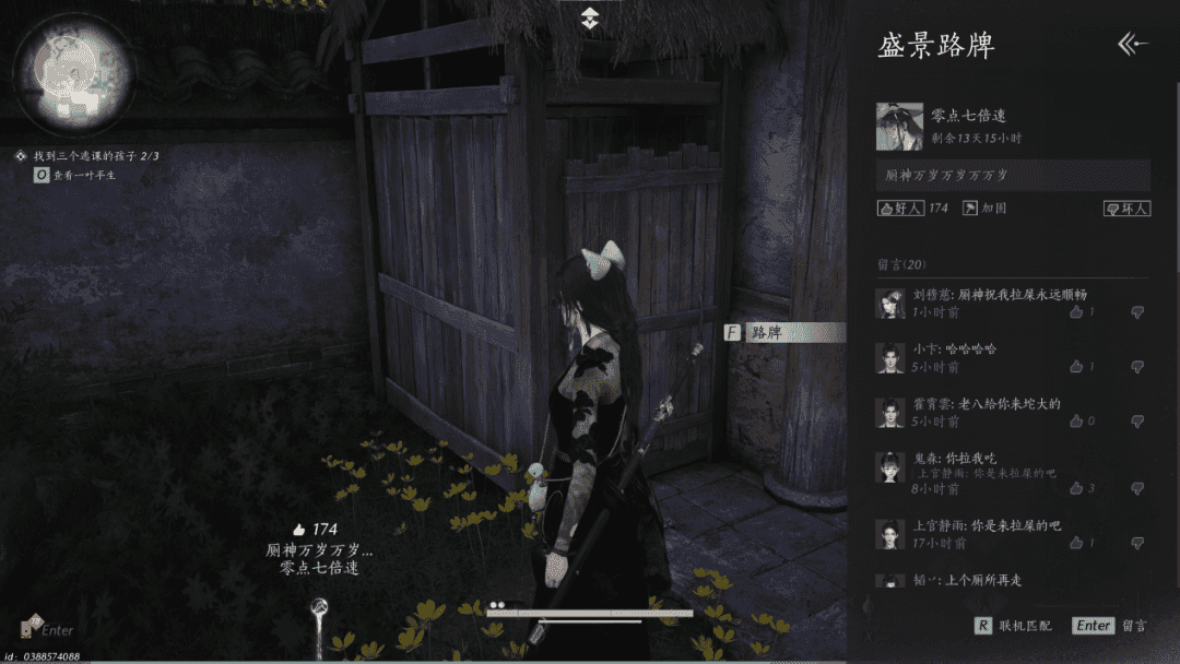 在游戏中,玩家可以通过立牌来抒发自己感想或简单粗暴的吐槽,之后看到的玩家同样可以回复跟帖,这种存在于单人模式的隐性多人玩法,同样让整个江湖鲜活起来。