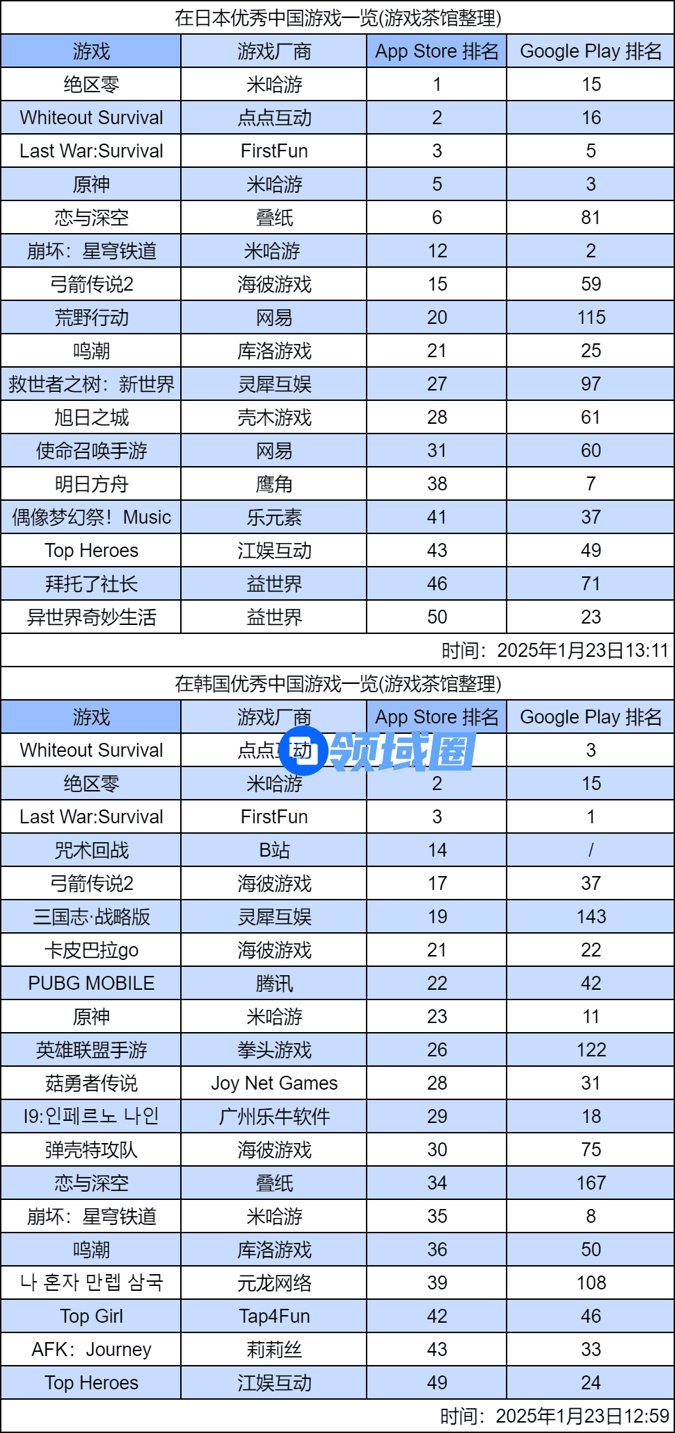 在本期日韩出海秀中,《绝区零》与《Whiteout Survival》分别是日韩游戏畅销榜最靠前的国产游戏。