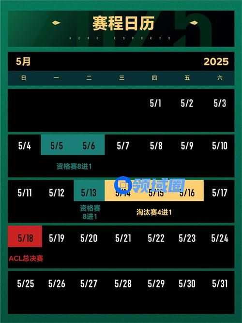 ACL王者荣耀赛事将分为预选赛、淘汰赛和总决赛三个阶段。根据2025年KPL春季赛常规赛第三轮结束后的排名,A组排名A5、A6的队伍以及B组的所有队伍将在5月5日至6日及13日展开资格赛的激烈角逐,争夺唯一一个晋级名额。紧接着,淘汰赛将于5月14日至16日进行,从资格赛中脱颖而出的队伍将与2025年KPL春季赛季后赛的第3至第5名展开对决,四支队伍中将有一支成功晋级决赛(季后赛名次并列的情况下,第三轮常规赛排名高者获得参赛资格)。最终,这支队伍将与2025年KPL春季赛的亚军在5月18日展开巅峰对决,争夺ACL的最高荣誉。