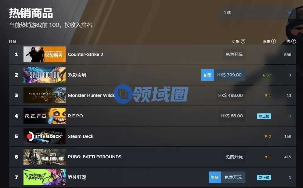 当然,我必须要在这里先画一个重点,那就是“海外”。我这么说并非是空穴来风,按照业内习惯于“向钱看”的商业逻辑,无论是《七日世界》《漫威争锋》还是《界外狂潮》,他们在海外畅销榜的排名,都远远高于国区市场。