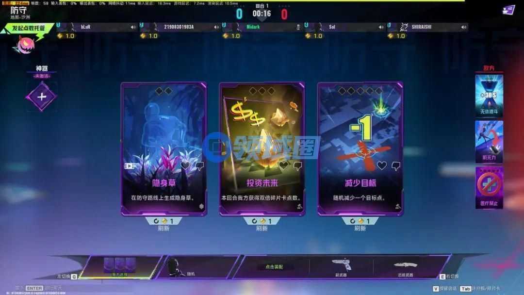 每局开始前,进攻和防守方队伍都会获得三张卡牌,不同卡牌需要消耗不同的积分点数才能生效。而玩家需要做的,就是通过战斗获得大量积分,尽可能的让更多的卡牌生效,从而换取下一回合的额外优势。