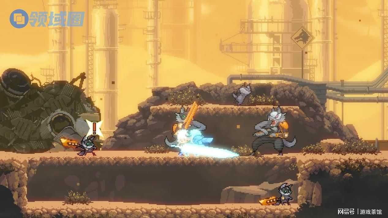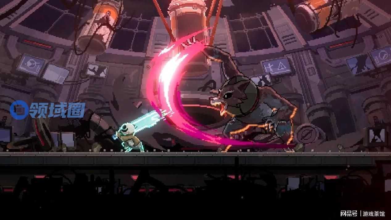 游戏采用高精度像素美术,以鲜明的色彩对比和动态光影,构建出荒芜的机械废墟等极具氛围感的场景。细腻的角色动画、巨剑劈砍时飞溅的像素特效,以及敌人破碎后的“数字残骸”,都让每一次战斗更加激烈而富有冲击力。
