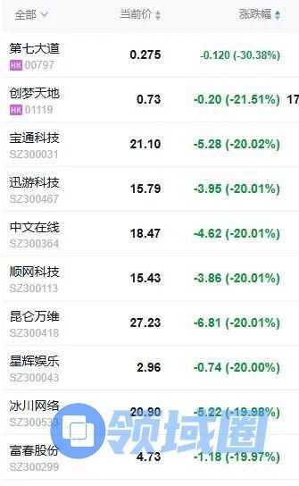 游戏茶馆观察,今天至少有35支游戏概念股股价跌幅超过10%,实在令人叹为观止!