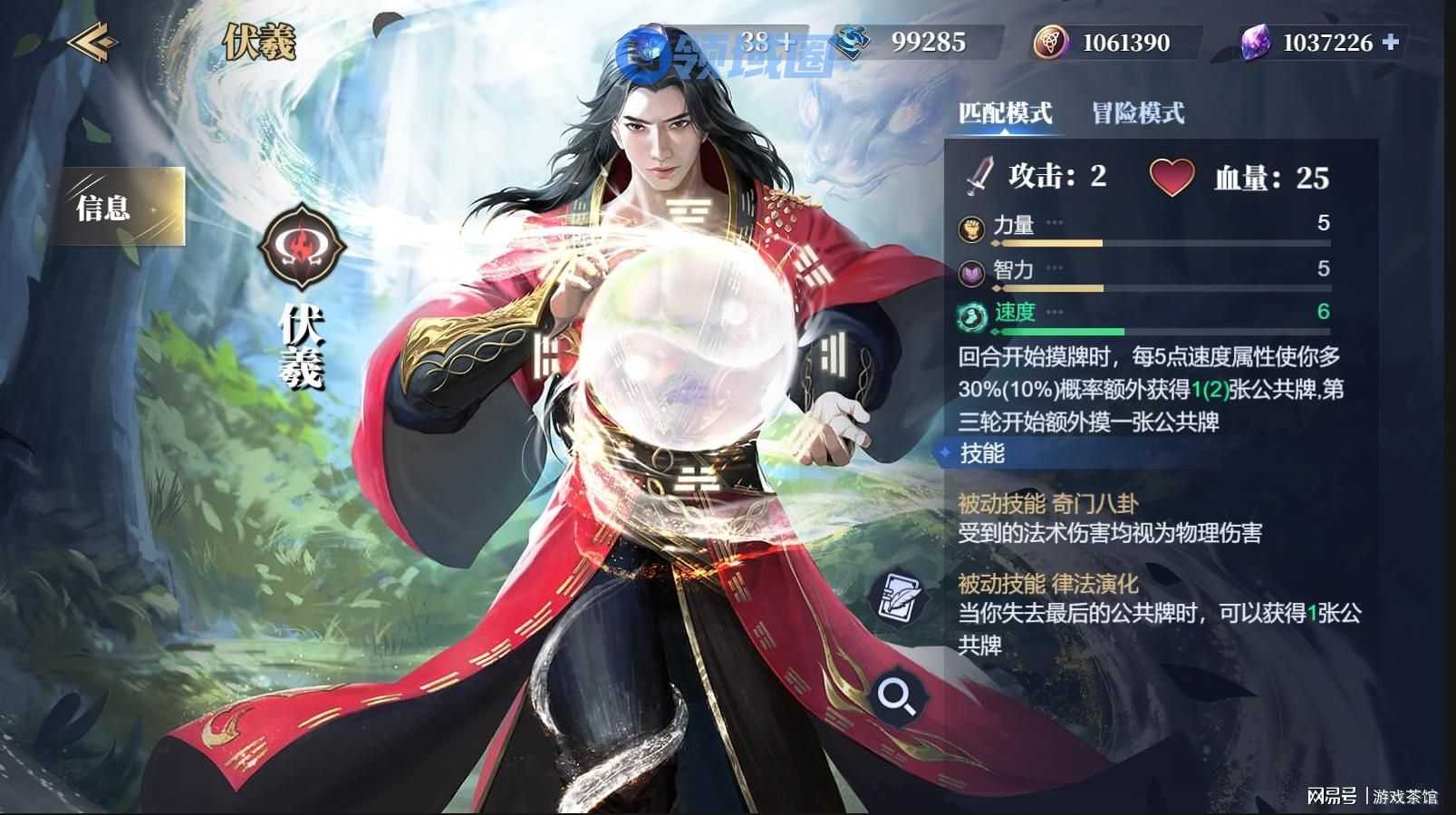 神灵卡牌除基础攻击力和血量外,还拥有三维属性(力量、智力、敏捷),影响技能释放和卡牌效果。例如,伏羲初始三维为5/5/6,通过“三重神力”可提升至7/7/8,解锁高阶技能。