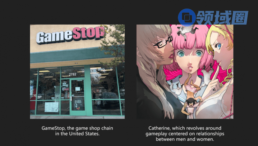 图片左边的店铺是GameStop,这是美国的一家游戏连锁店。每当我有空,我都会去那里逛逛,浏览各种游戏。有一天,我发现了一款名为《凯瑟琳》的游戏,它的故事围绕男女关系这一主题展开。这让我觉得,“啊,这看上去和我想要的最终成果类似。”