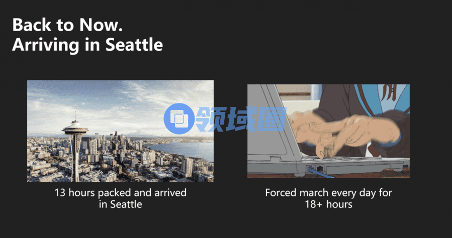 现在我们回到我接受投资并决定搬家去西雅图的时间点。就这样离开苹果后,驱车行驶13个小时到达西雅图,接下来的一段时间都是一系列的痛苦和犯错。尽管我在第一年每天工作超过18个小时,但由于开发进展不如预期,我一直处于一个尴尬期。