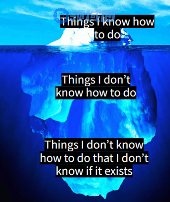 回顾《永夜》的开发过程,我觉得它最终看起来就像这样:我认为我知道如何做的只是冰山一角,下面是我不知道如何做的事情,再下面是我不知道如何做但甚至不知道它们存在的事情。就像这张图这样。