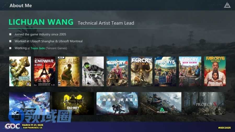 我叫王理川,自2005年进入游戏行业,至今已有约20年时间,这对我来说都难以置信。我曾在育碧上海和蒙特利尔工作了大约16年,专注于AAA级射击游戏,主要是汤姆克兰西系列,包括幽灵行动和分裂细胞,相信你们中的一些人可能知道这些IP,还有孤岛惊魂系列,从孤岛惊魂4一直到孤岛惊魂6。