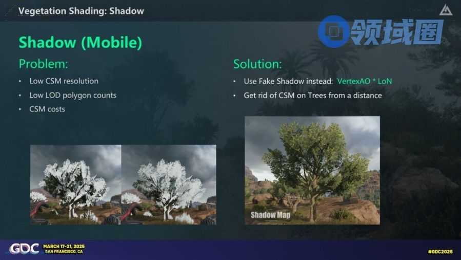 无论是顶点还是像素着色的预算面对画面中大量的植物来说都是非常昂贵的,其中阴影消耗是非常重的一块。