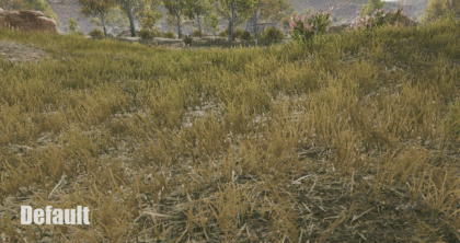 我们在clipmap中烘培了草的位置信息以供地形采样, 为地形做了额外的直接光和高光遮蔽,这很好的缓解了没有投影时地形和草的衔接问题。