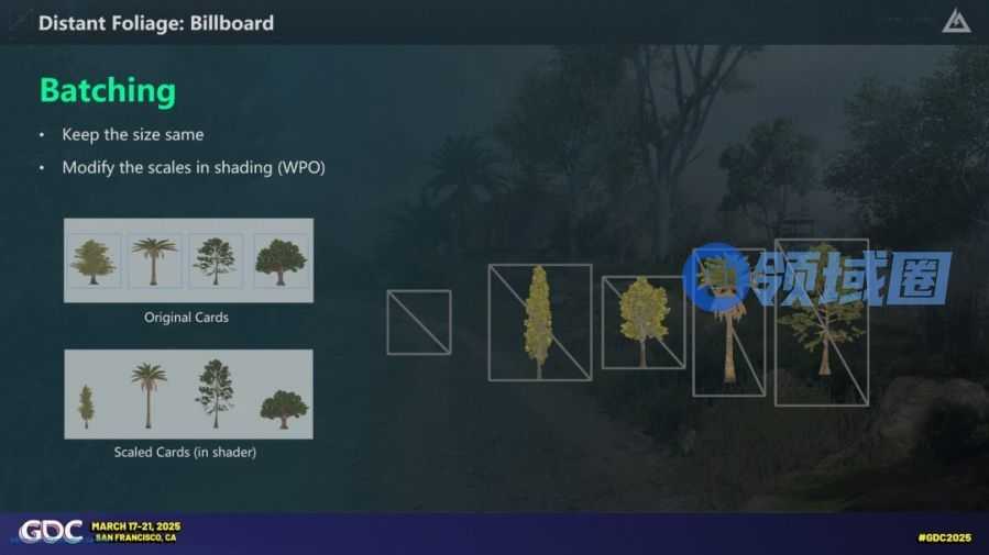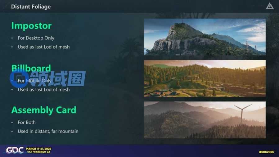 首先,是用impostor方案,它只用在PC端,并且同时作为植被的最后一级LOD。