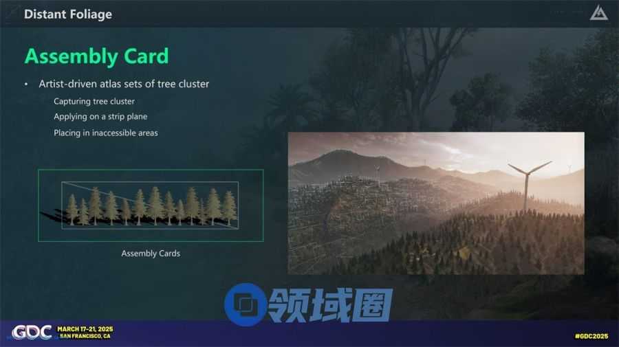 各种不同类型的billboard组合,构成了Assembly card的多样性,从而组成为DF世界的远景和非触达区域的森林。
