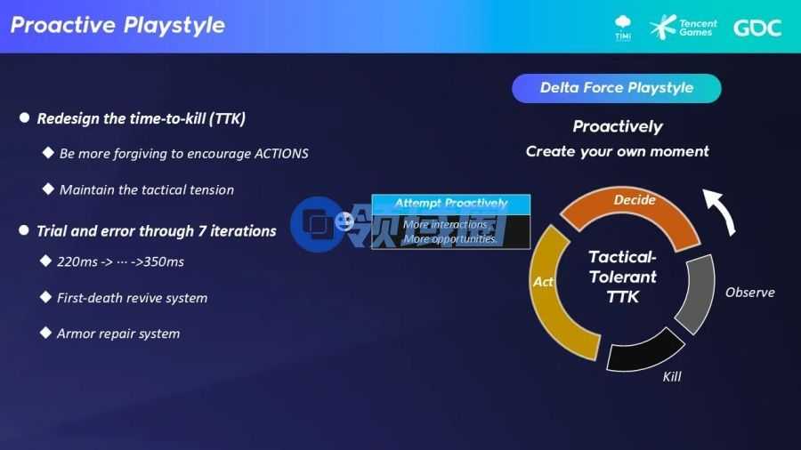 从2023年开始,我们历经7个版本的小心测试,最终将平均TTK从200毫秒提升到350毫秒,具体TTK构成非常复杂,由于时间原因不再展开。同时也引入了二次救援机制、护甲维修机制。