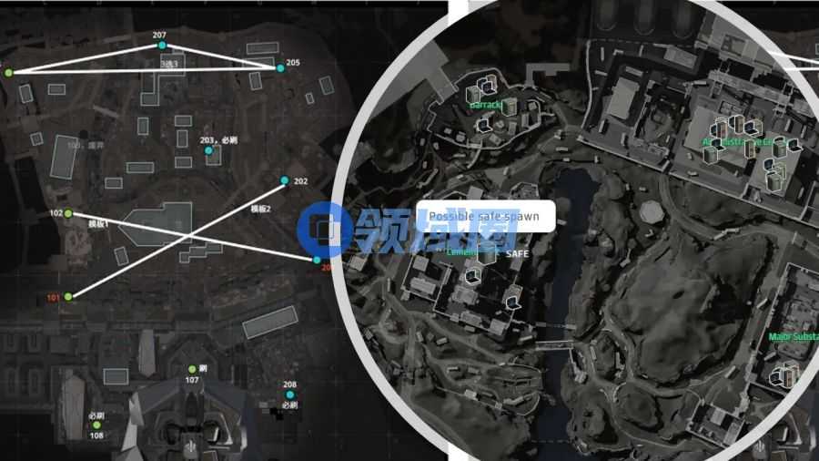 除此之外,我们也在尝试在地图中引入更多的随机元素,这是为了让打法策略更加动态,让玩家的策略不能一招鲜。比如每一局,出生点是都会按照一定规则进行半随机刷新;比如,高级物资容器的刷新位置是在每一局都是变化的。