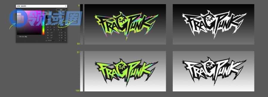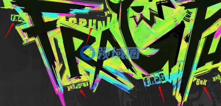 接下来我们开始对LOGO进行一些动效包装。我们通过故障碎片、多元化的FragPunk文字效果,脉冲和干扰现象结合,表达动态酸性风格带来的鲜艳色彩和强烈对比,以数字故障碎片重构视觉维度,让FragPunk文字在赛博脉冲中多维跃动,也符合游戏本身的风格和调性: