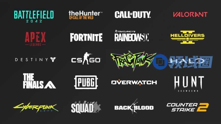 然后,我们把定稿的LOGO和其他射击游戏的LOGO摆在一起,对比它们的效果。可以看到黄绿的配色+文字的造型是非常有差异化的,你一眼就能在这些LOGO当中看到它,这也是我们想要达到的效果。