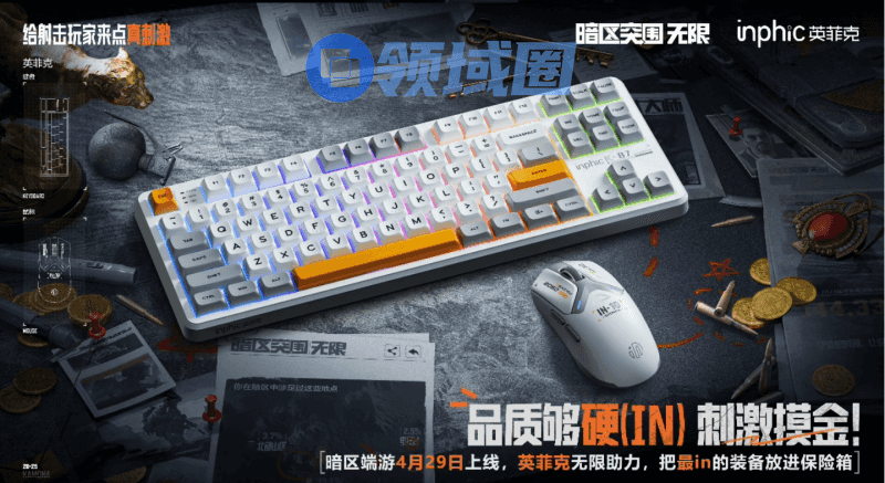 4月29日,魔方工作室首款端游《暗区突围:无限》将全平台上线!凭借IP影响力和海外版口碑,游戏早已点燃硬核玩家的热情:海外Steam上的心愿单排名一路飙升,突破200万;国内全平台预约量破1000万,各大平台预约数持续霸榜。为迎接广大玩家的热情,《暗区突围:无限》将携知名国货外设品牌inphic英菲克等12家知名硬件品牌“硬核共庆”,壕送英菲克鼠标、游戏高级礼包CDK兑换码25份、Q币等多重奖品。