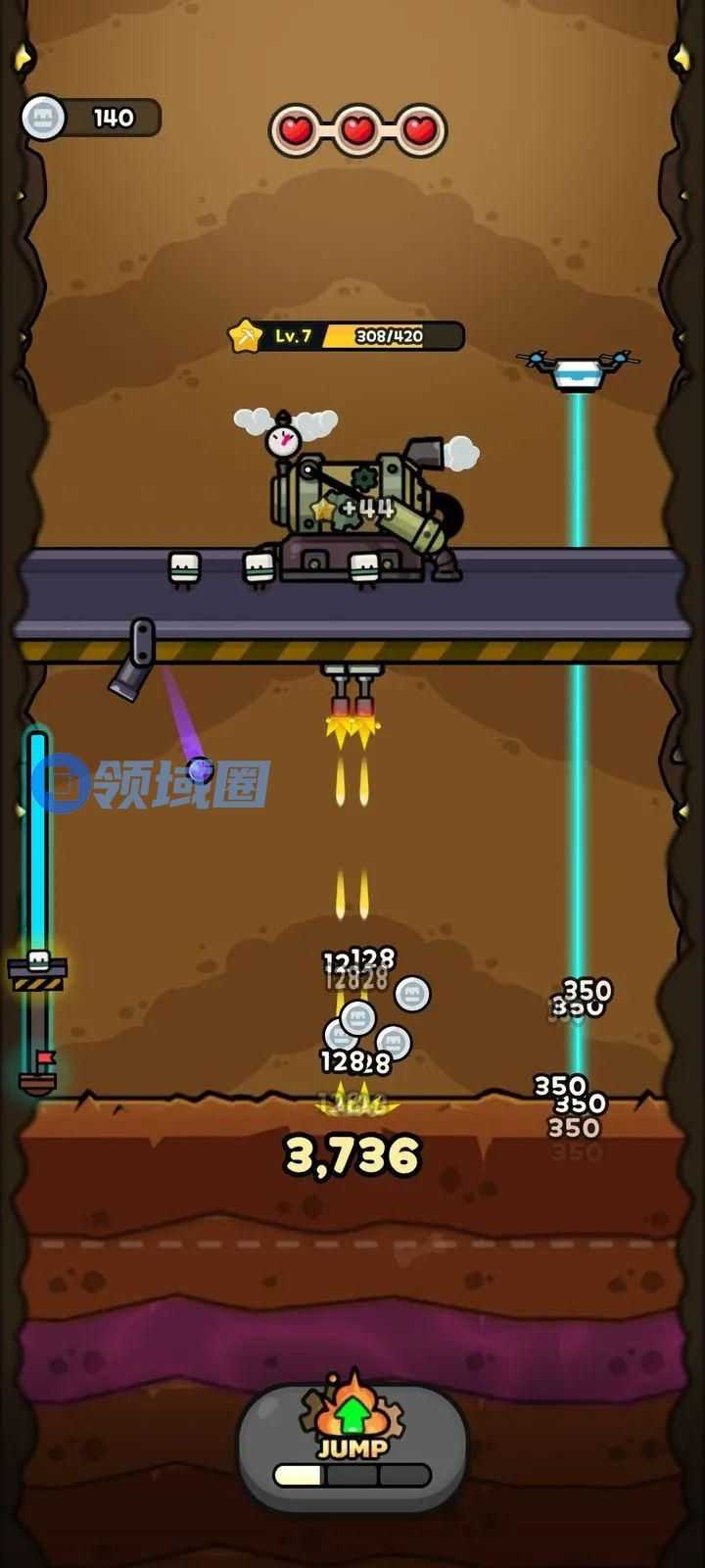 《行星挖掘队》也是一款塔防类的产品,游戏整体玩法类似“靶心like”,游戏中的武器会自动朝着地下进行输出和挖掘,这个过程中收集来的星核奖励,可以通过肉鸽选项来升级武器和装备,加快挖掘效率,同时应对地底的怪物攻击。