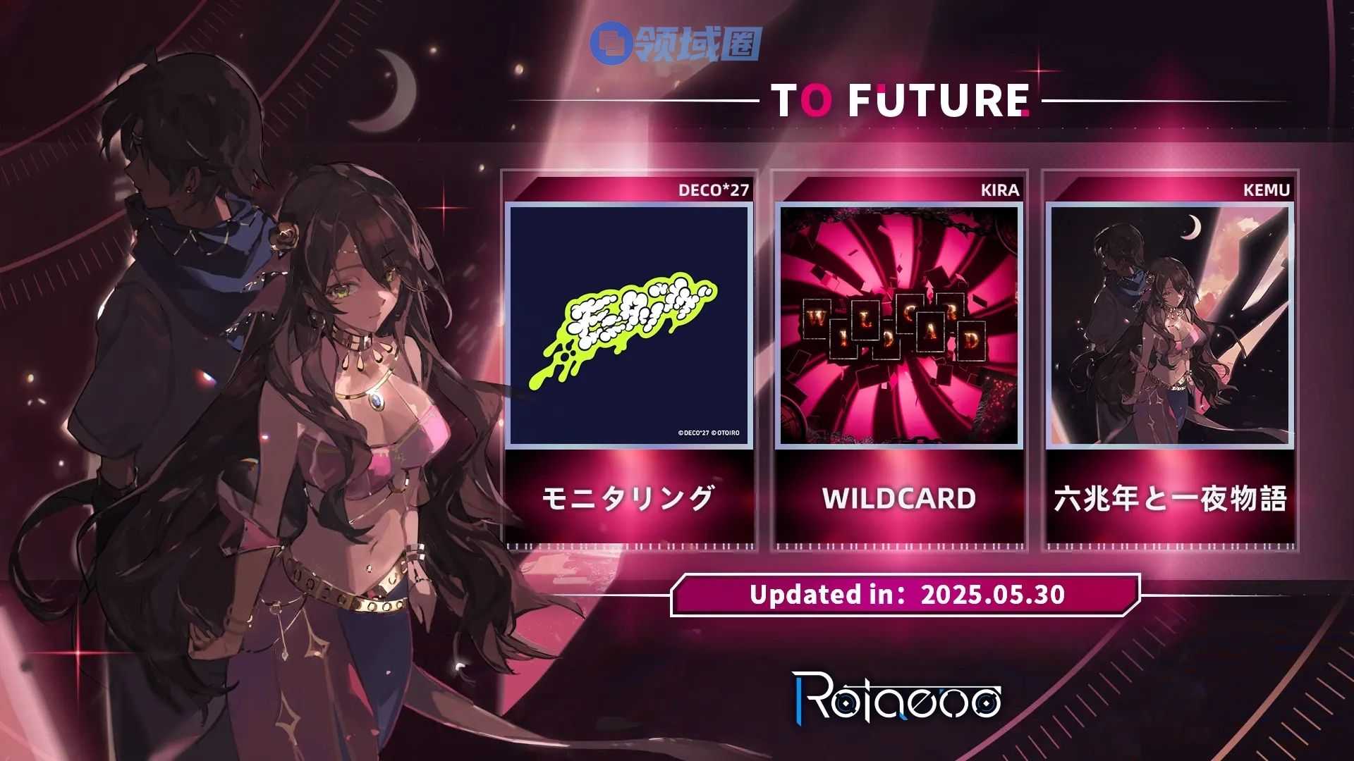 去年的两周年版本中,《旋转音律》已经与活跃在Vocaloid业界中的几位知名作曲人进行了精彩纷呈的联动。在今年的三周年版本,游戏再次带来了豪华的全新曲包 —— 集结DECO*27、KIRA、kemu等知名V家P主的豪华曲包「向未来之声」将于5月30日同步上线,其中包含两首播放量破千万,一首播放量破五百万的殿堂级V家名曲,他们分别是: