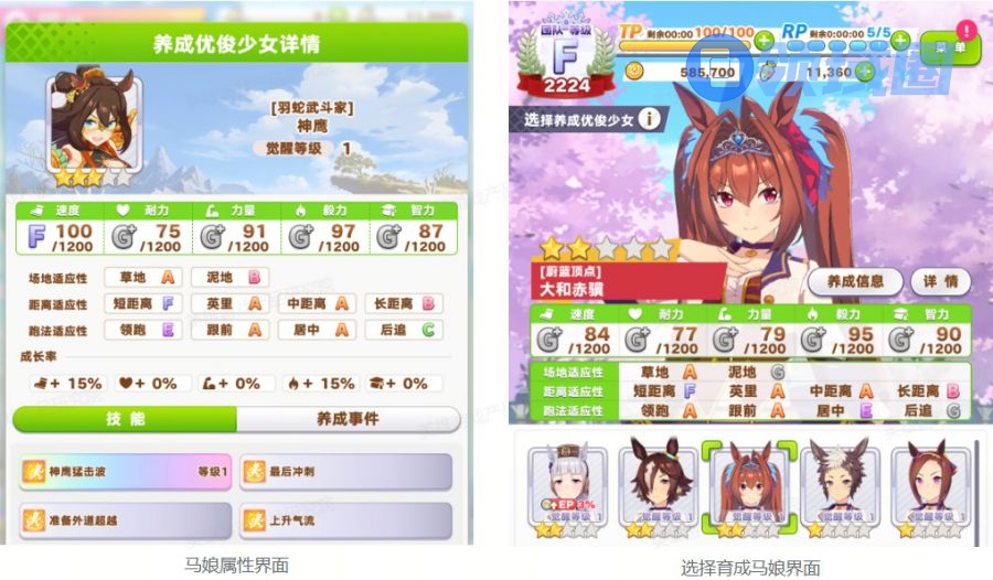 选择坯子(育成马娘):育成马娘是养成的核心,也是养成完成后的载体。育成马娘在组建牌组时会拥有一定的初始属性与初始技能,以及相对应的场地、赛道长度适性等。