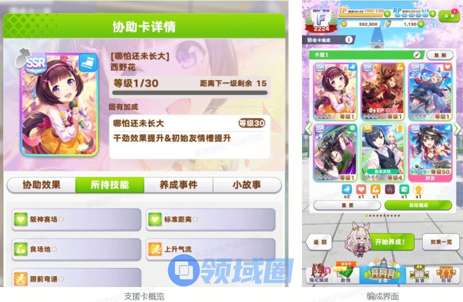 选择支援卡:玩家在组建牌组阶段能够携带6张支援卡(5张玩家持有 +1张好友助战)进入育成。支援卡在育成过程可为马娘提升属性或习得/升级技能。