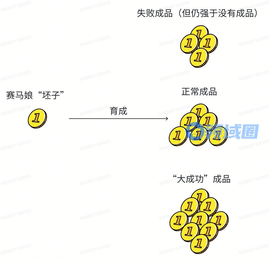 玩家在进入本模式时的投入为赛马娘“坯子”,虽然最终的产出有优有劣,但玩家在中前期进行横向养成时成品“从零到一”的过程必定能够提高玩家练度。正如同带着少量“筹码”进入赌场却能稳定换来更多“筹码”的情况,这样低投入高产出且产出稳定的行为能够使玩家建立对目标的期望,进而形成习惯。每当在养成环节中遇到高风险高收益的选项时便会想来“赌一赌”,一旦能够“中大奖”则会获得更多的喜悦。
