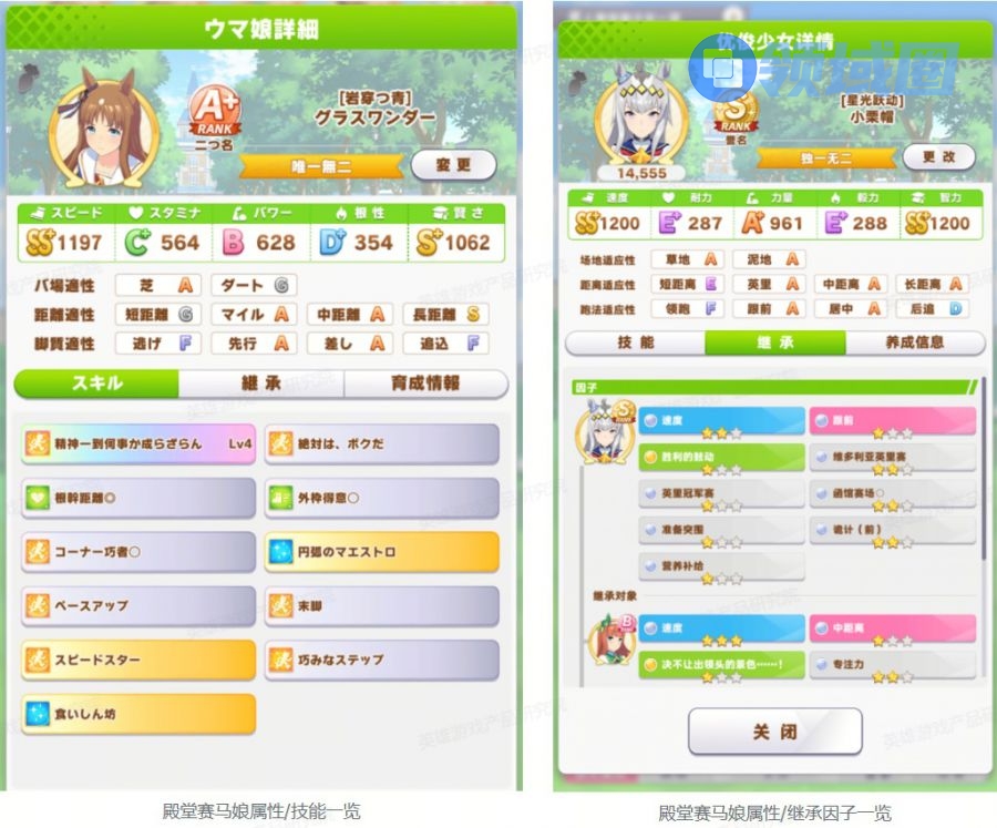 玩家育成的殿堂赛马娘的属性会折算成等阶与数字,玩家一目了然便能知晓育成结果好坏。