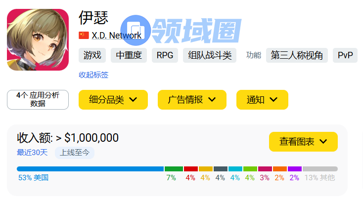 据Appmagic显示,上线近一周,《伊瑟》目前流水预估超百万美元,其中美国玩家贡献了超一半收入。