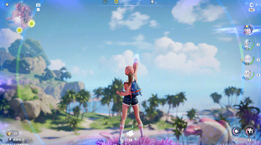 丰富的伊莫品类能提供多样的操作体验,而《伊莫》设计了多维度的捕获方式,使传统收集环节不再单调。常规状态下,玩家可以选择丢出“谜立方”直接进行伊莫收集,但面对一些机警的物种,有时也需要偷袭或者利用特殊的物种习性提高捕获的概率。使用特殊道具捕获,也能使玩家们事半功倍。