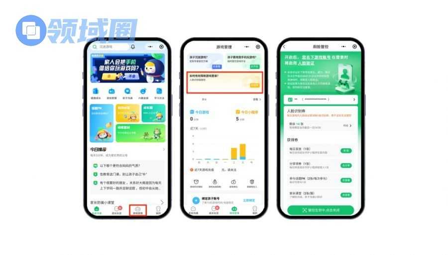 在家长希望悄悄管控自己名下游戏账号而不被孩子知道的场景,推出“家长自助下发人脸识别”功能,提供了更加隐蔽的管控方式:家长验证身份后,可给自己名下游戏账号自助使用“人脸券”,系统将以平台名义弹出人脸识别,既能将孩子拦在游戏之外,也能有效避免亲子正面冲突。此功能正在灰度测试中,发券规则将不定时调整,保证家长妥善有效使用。