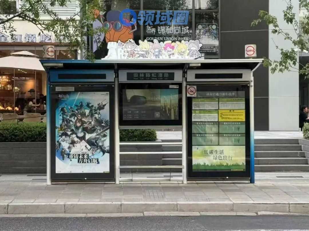 环行元界一周,我也发现元界街区蔓延1.9公里,将二次元元素融入整个区域,带来了新的城市景观。桂林公园地铁站绿化带被改造成了游戏机框景,苍梧路 “神经元” 主题家具将停车区转化为休憩互动空间,《明日方舟》联名 “痛站” 实现公交设施与 IP 融合。