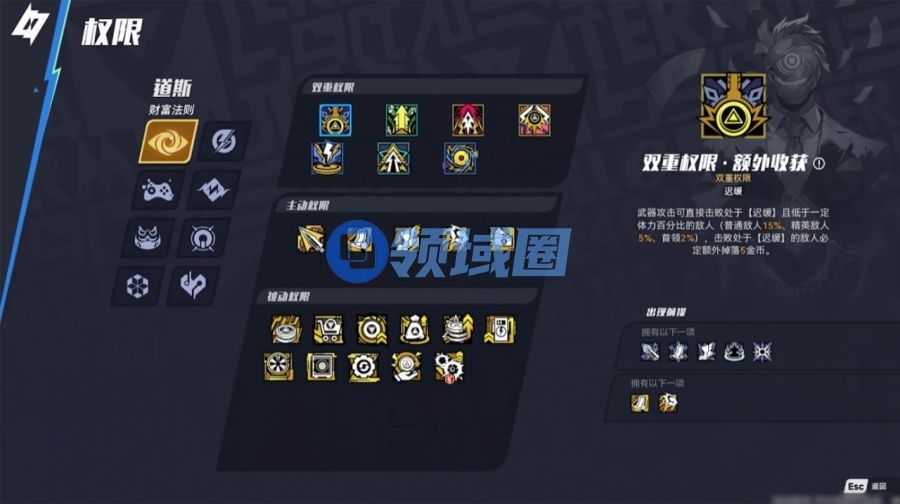 具体来说,在最核心的BD上,游戏做出了爽感。游戏开局会提供八种方向的权限法则供玩家选择,每种法则都有着主动、被动、双重权限,各个法则对应的流派特性区分得得很开。在开局选择什么样的权限法则,对接下来整局的流派方向起着关键性的作用,玩法体验也不相同。