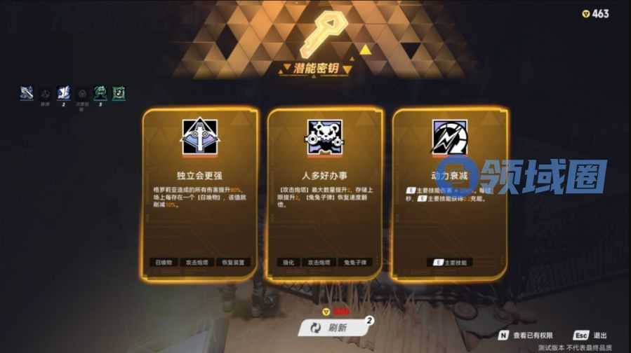 - 能力模块,局外BD部分,分为伤害、护盾、生命等天赋板块,用源码点数升级,源码在关卡结算中掉落。