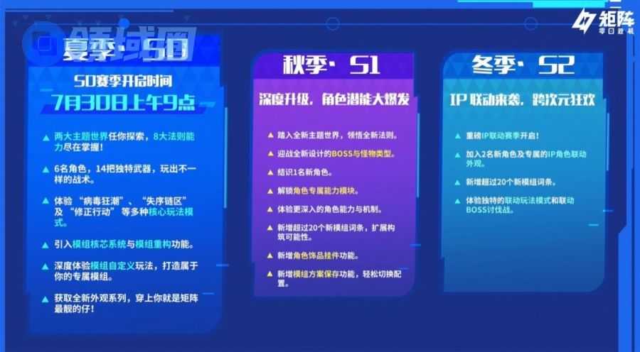不难发现,无论是在品类痛点上还是在产品的定位上,《矩阵》团队其实都分析得很透彻,甚至说在6月份的时候,团队就已经公布了未来一整年的赛季更新计划,这也让我对产品的长线表现多了一份期待。