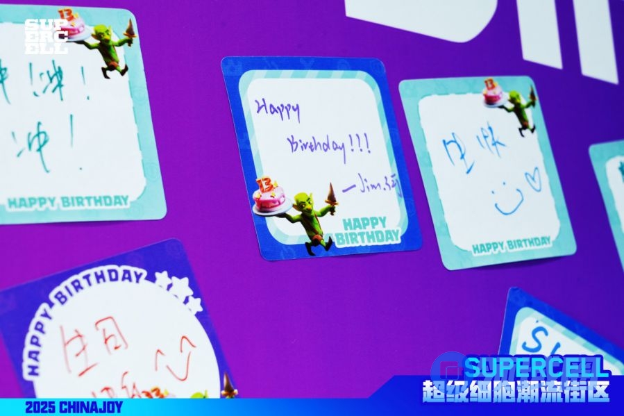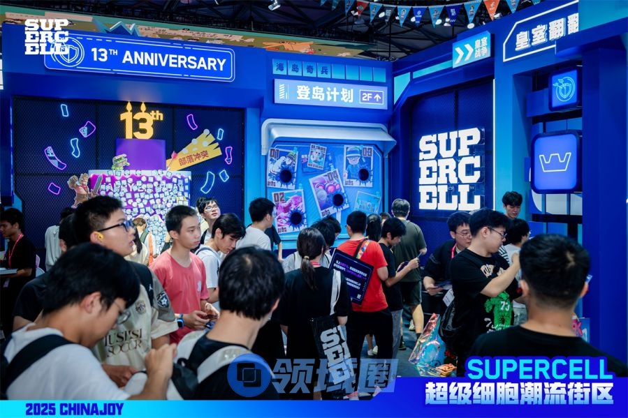 玩家步入「超级细胞潮流街区」即可沉浸体验五大核心场景:在《部落冲突》13周年庆区书写祝福装点巨型蛋糕墙,化身《海岛奇兵》指挥官完成战术投射挑战,参与《皇室战争》卡牌翻翻乐记忆对决,触发《荒野乱斗》星妙惊喜宝箱系统,转动《爆裂小队》典藏扭蛋获取神秘好礼,并可在MO.CO狩猎行动区抢先试玩新游。完成任意3项互动集章,即可兑换每日限量的Supercell专属周边礼盒。