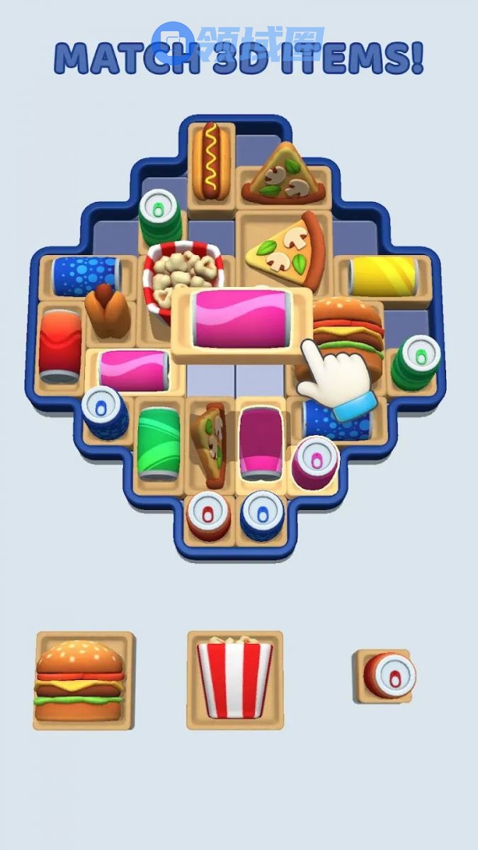 玩家要做的就是在每关的格子空间中,把相同的3个物品摆放在一起进行三消,同一个物品的不同角度算作同一个物品。