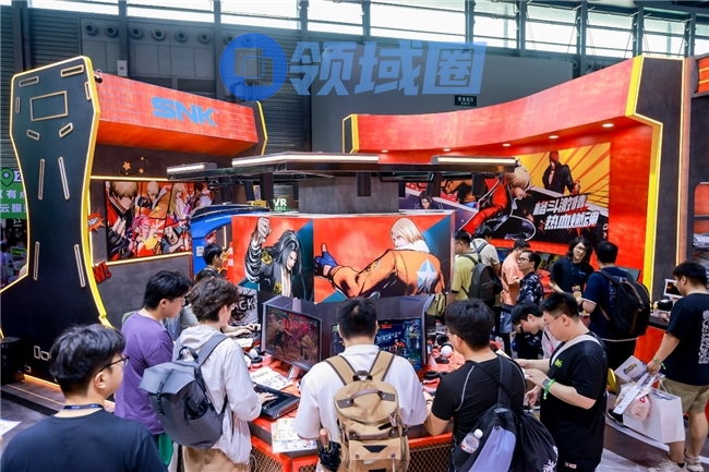 SNK展台为玩家粉丝准备了丰富多样的体验内容。首次开放《饿狼传说:群狼之城》与《街霸》联动角色"肯"的国内线下试玩,以及《拳皇15》《侍魂 晓》《合金弹头:进攻 RELOADED》等SNK经典作品吸引了大量玩家排队体验。