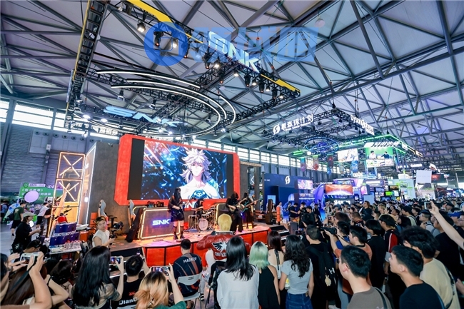 摇滚乐队Noize带来SNK经典游戏BGM串烧表演,将现场气氛推至高潮,引来众多玩家驻足观看。