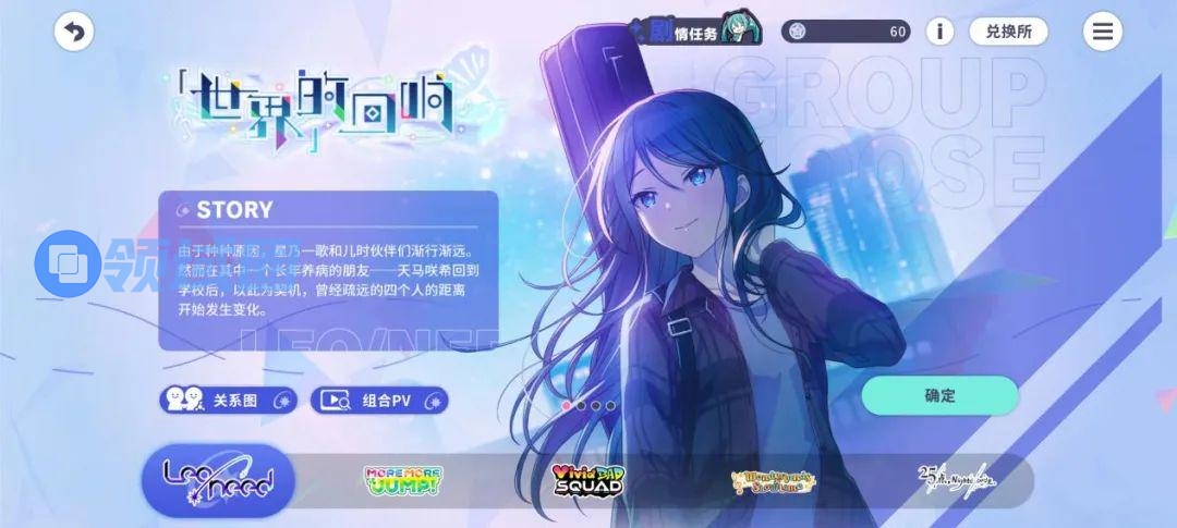《初音未来:缤纷舞台》带来的剧情体验,就如看乐队动画。游戏内有五组风格各异的少男少女,他们由初音未来等虚拟歌手引领至“世界”,通过聆听彼此的心愿,从而诞生不同风格的歌曲。值得注意的是,国服版本新增有“世界的回响”功能,不仅新玩家可以“补番”,外服玩家也能重获错过的活动称号及收益。