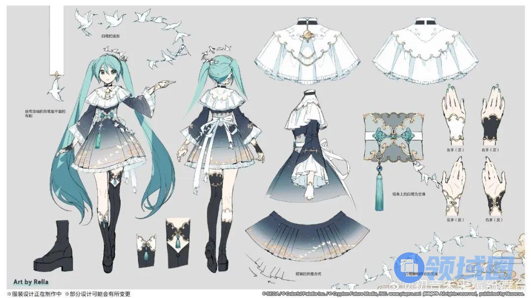 此外,初音未来的知名同人及国人画师Rella(蘑菇太太)也受邀为《初音未来:缤纷舞台》设计了公测纪念服装。设计稿一经公开,便在评论区引发玩家们的高呼,甚至让外服玩家都感到羡慕。