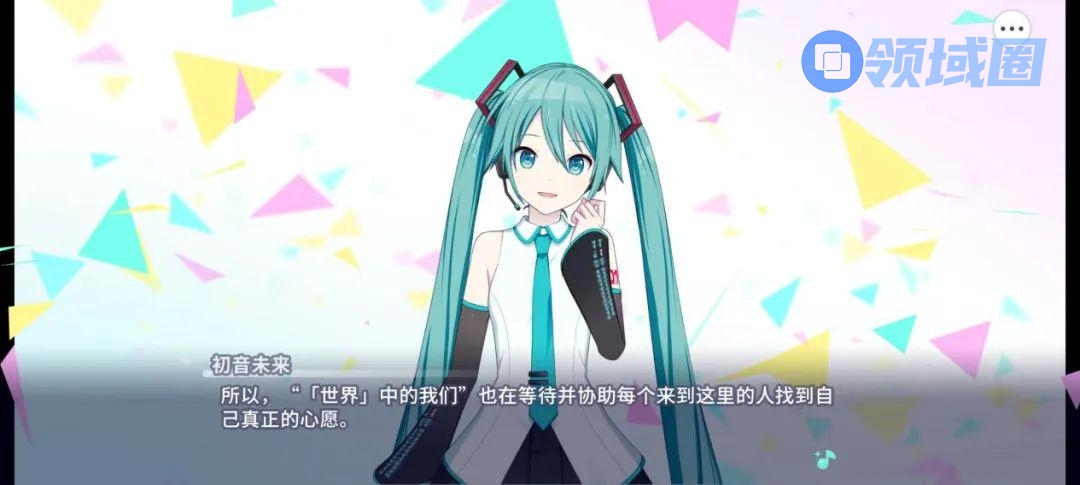 就像在游戏原点中,初音未来对屏幕外的玩家说:“世界中的我们在等待并协助每个来到这里的人找到自己的心愿。”