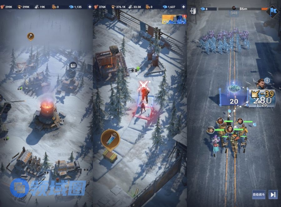 这款同样在财报中被提及的 SLG,采用当下较为主流的冰雪题材,并融入丧尸要素。美术同样是偏写实的风格,但在表现力上不如《Fate War》。游戏里也有标志性的“火炉”建筑,却没有模拟经营要素,玩法上主打的卖点其实是选择门副玩法。