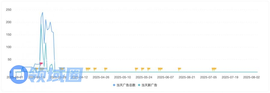 买量方面,IGG 仅在游戏开启预约和上线后半个月内进行了投放,时间持续不到一个月,且日投放量极少,最多也不超过 250 组,他们似乎还没有准备好大规模推广本作。