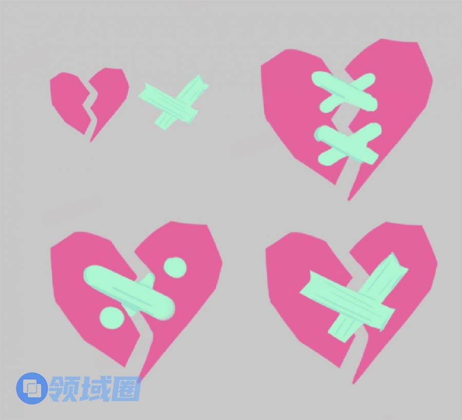 比如被修复的心形图案,这是与修复家园的背景设定相呼应的,你可以在这次很多角色的服装设计上看到这一图形: