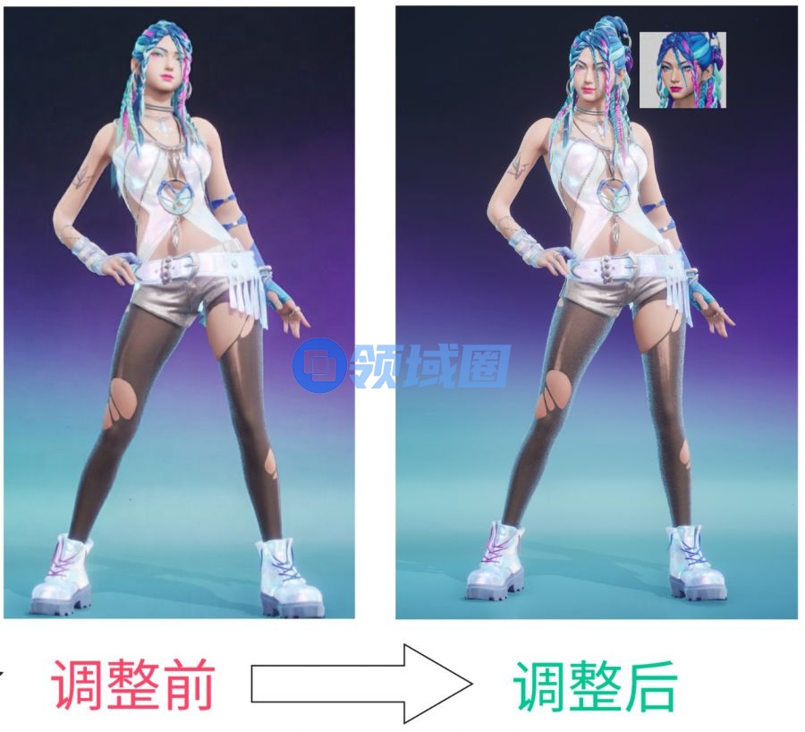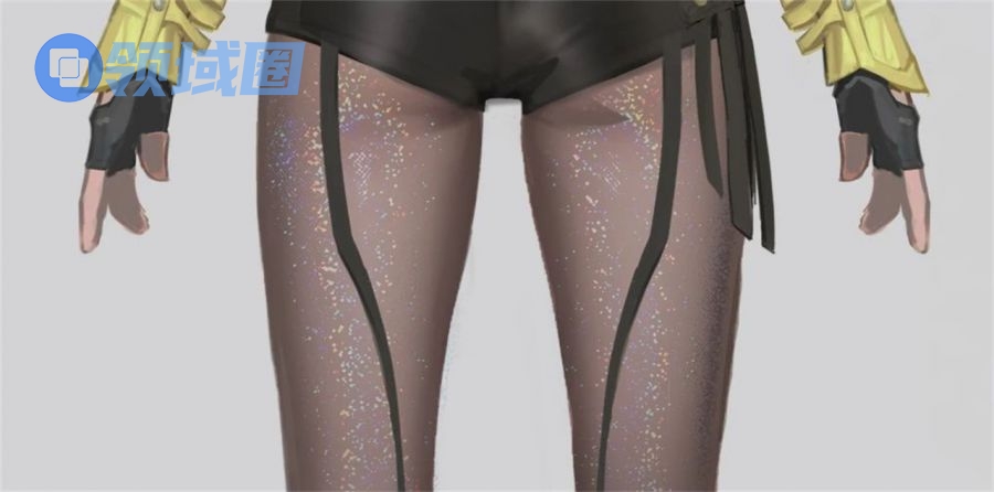 特别是流星的下装,丝袜到裤子材质过渡的地方,额外的五彩闪点让整个衣服看起来变得更加高级了:
