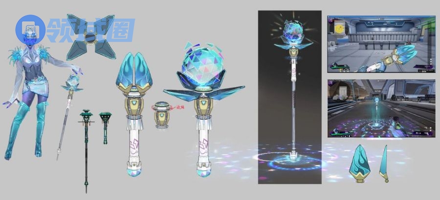 而麦克风和鼓槌的设计思路会有所差异。麦克风由于它使用情景的关系,不太适合融入到武器本身的设计中,所以我们加入了变形的效果:平时它看起来就像是一个正常的手枪,只是枪管能看出来是麦克风的外形;然后在变形之后,手枪会完全变成一个舞台麦克风的样子,供角色去使用。