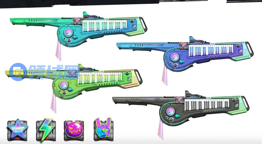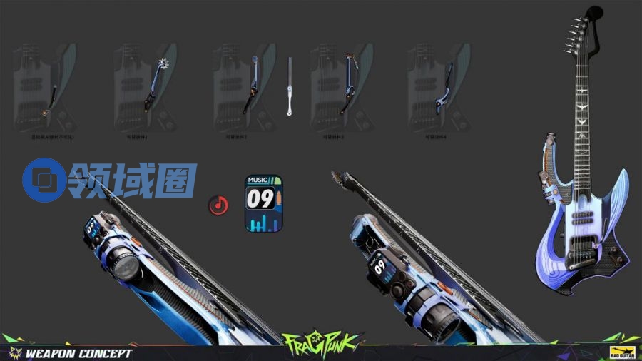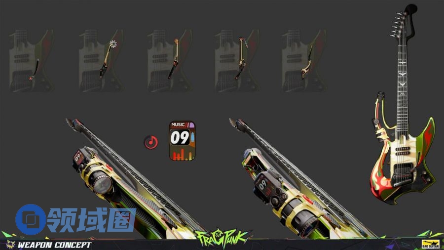 然而,为了更契合我们《界外狂潮》打破规则的slogan并希望实现突破,我们决定采取颠覆传统的设计方向——将武器直接打造为乐器的形态!